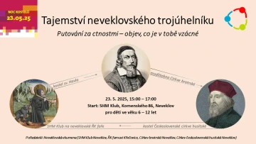 15:00–17:00: Hra „Tajemství neveklovského trojúhelníku“ pro děti od 6 do 12 let, začínala u SHM klubu na faře (Dešťovka), kde se malí účastníci seznámili s tématem ctností. Putovali na několik míst v Neveklově – do kostela sv. Havla, modlitebny Církve bratrské a kostela Církve československé husitské – hledali ctnosti tří osobností i v sobě samých. Program uzavřela odměna na farní zahradě.